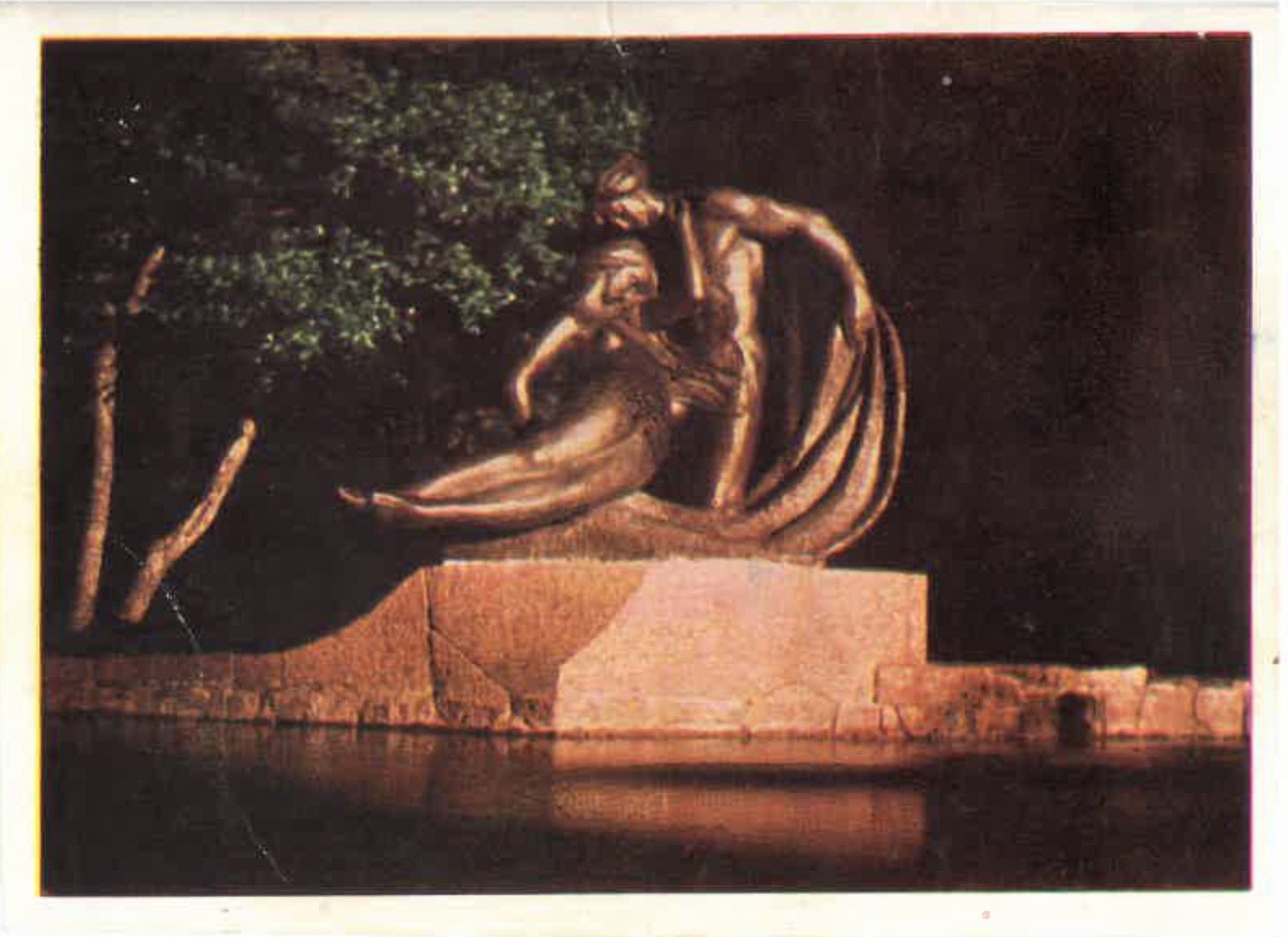 Atvirukas su Jūratės ir Kastyčio skulptūra Palangoje.
