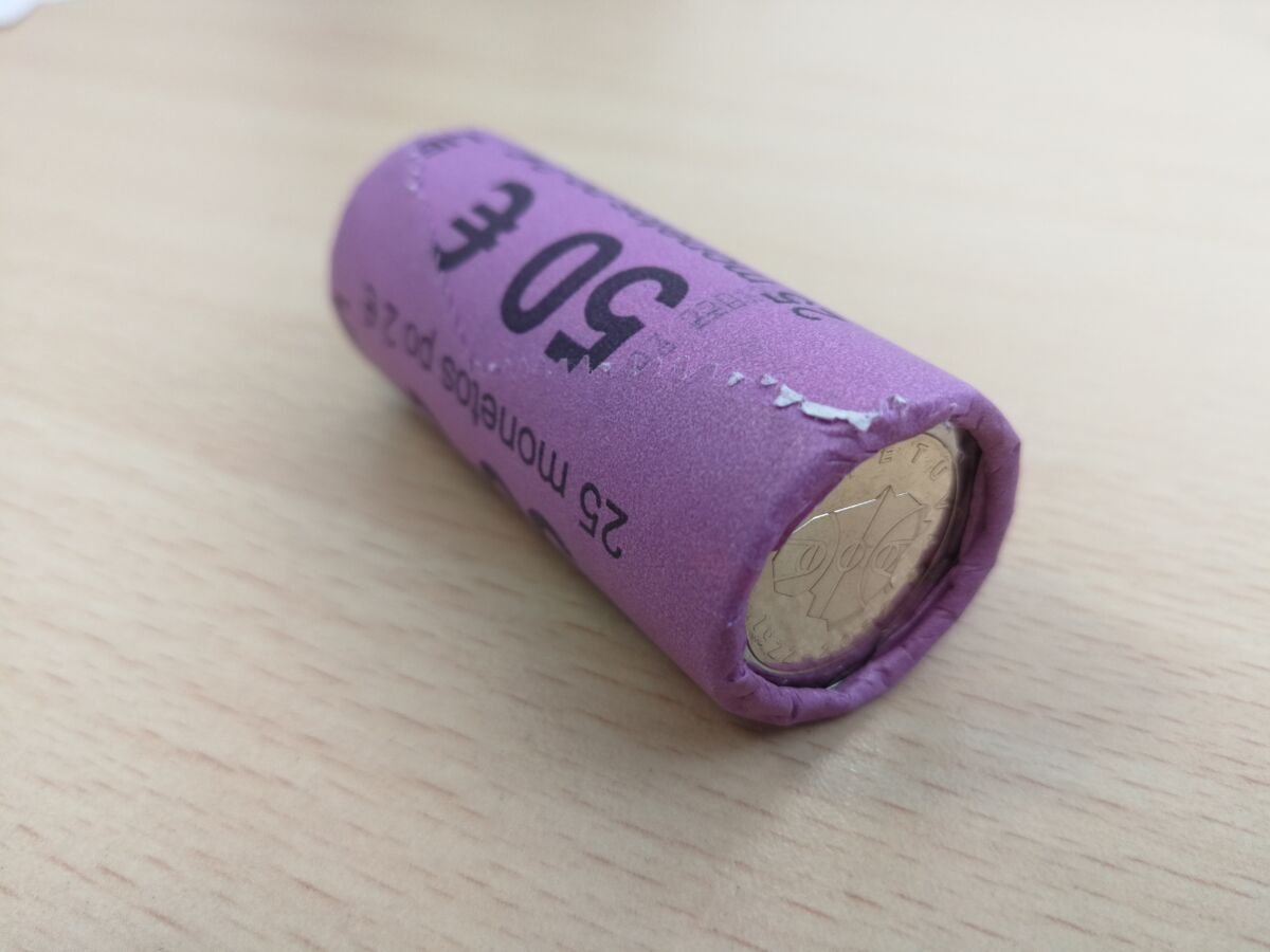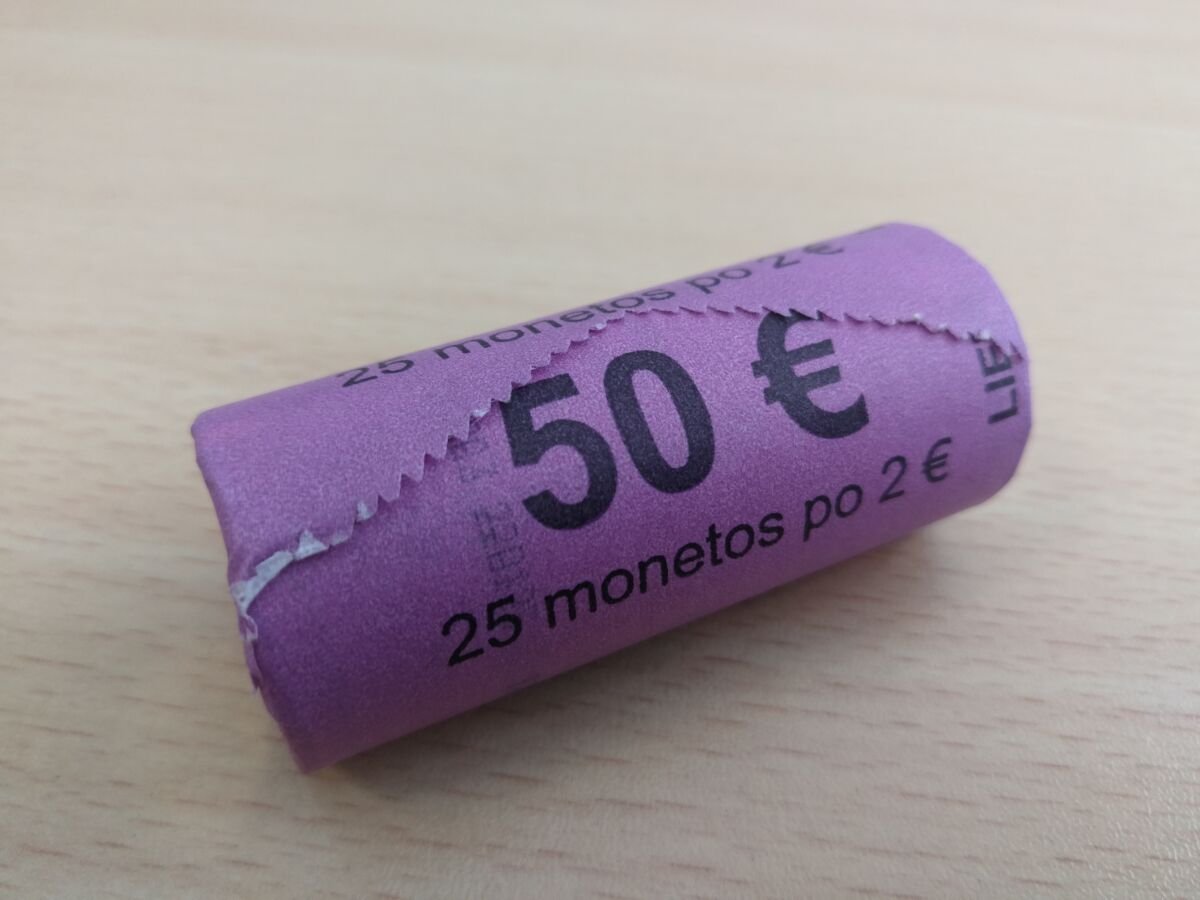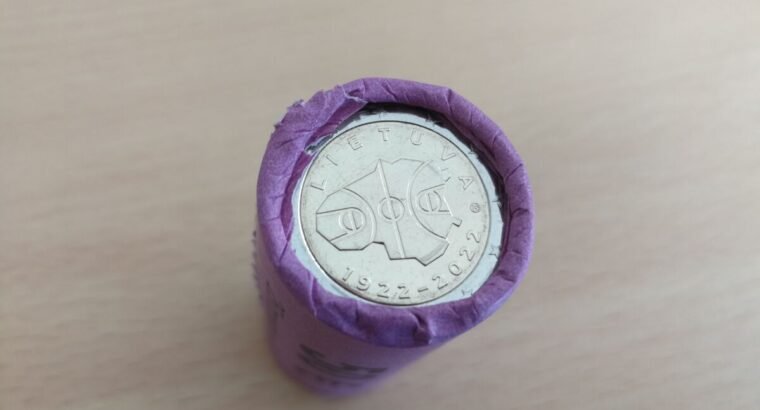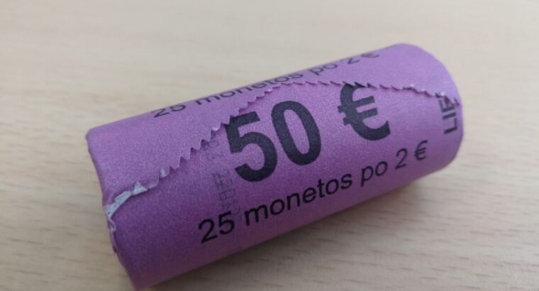 Bankinis ritinelis su 25vnt. proginiu dvieju euru monetu Lietuvos krepsiniui. Monetos UNC